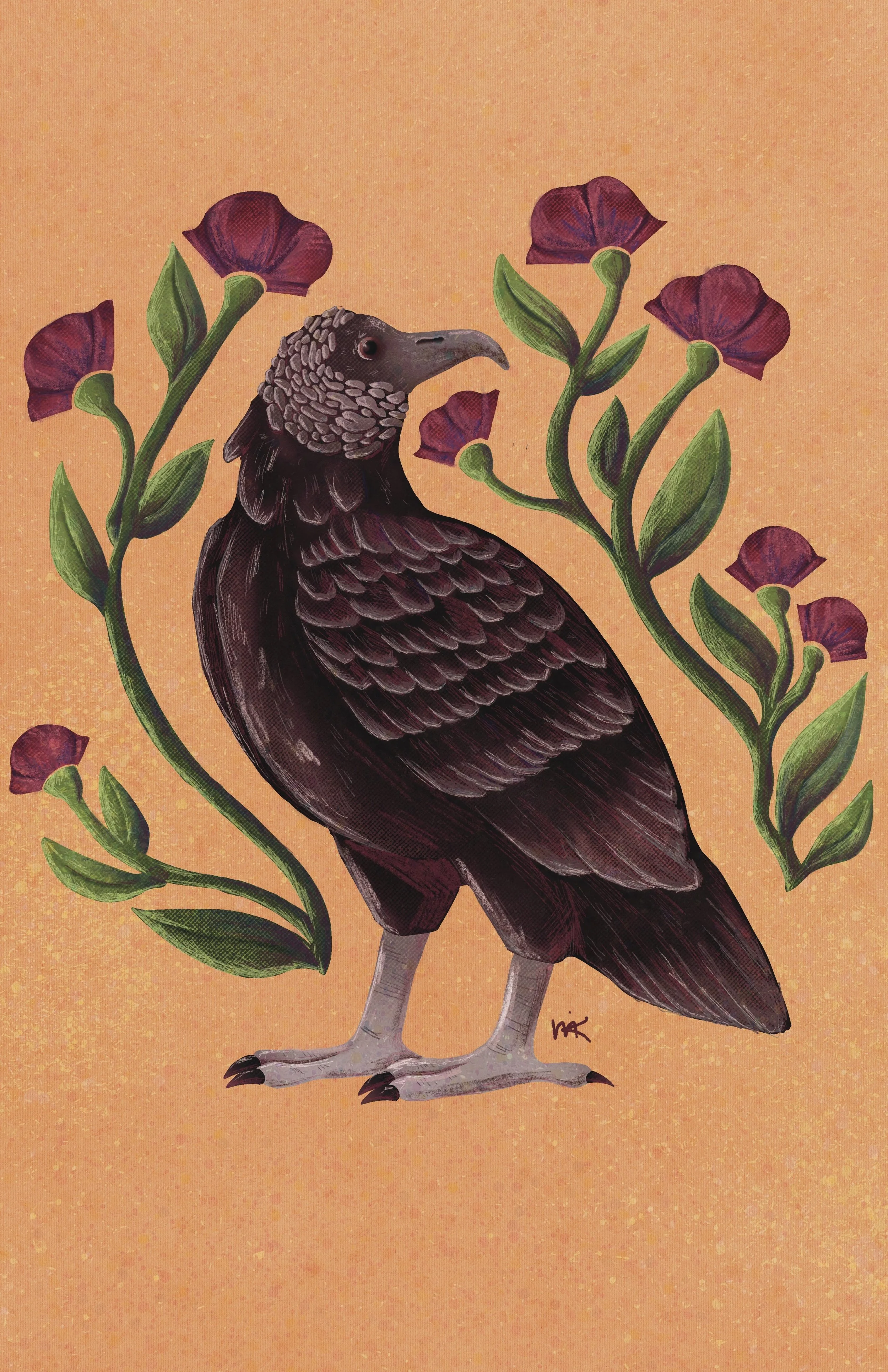 The main inspiration behind the project! Black Vultures are known for finding food by sight and not smell like the Turkey Vulture does. This design began as a linocut, but quickly became a digital illustration instead to showcase more detail.